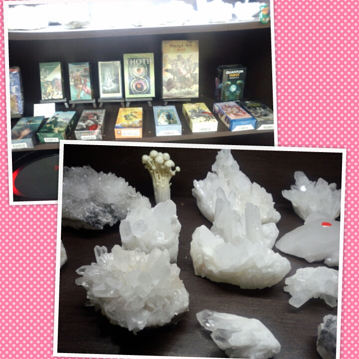 上段がタロットカードです。ただ今のところ14種です。随分増えてきました。宗教画風の格調高いものから、ファンタジックでかわいいもの、魔術の伝統を受け継いだスタンダードなものなど多くのパターンを取りそろえました。手にとってタロットカードの神秘にふれられるのもいいかと思います。